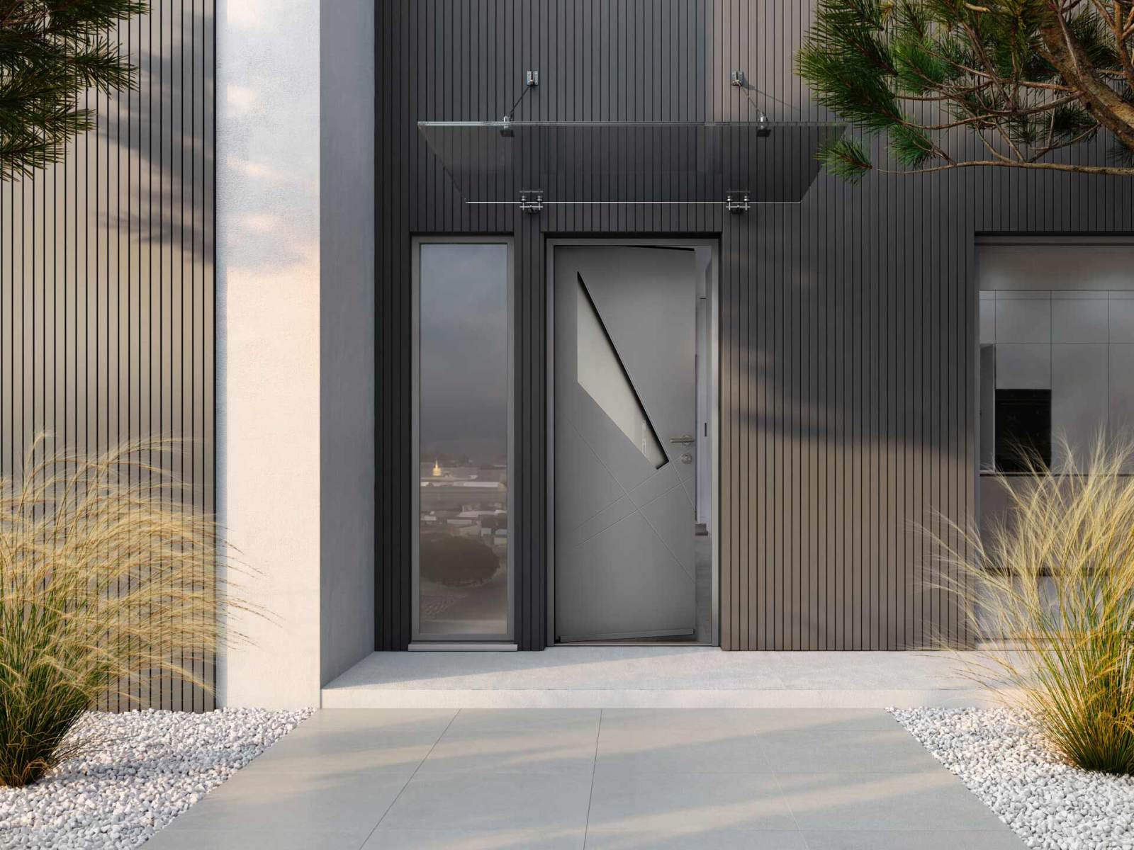 Une large gamme de portes d’entrée aux styles variés, mêlant design contemporain, lignes sobres et finitions soignées, pour s’harmoniser avec tous les univers architecturaux et sublimer l’entrée de votre maison.
